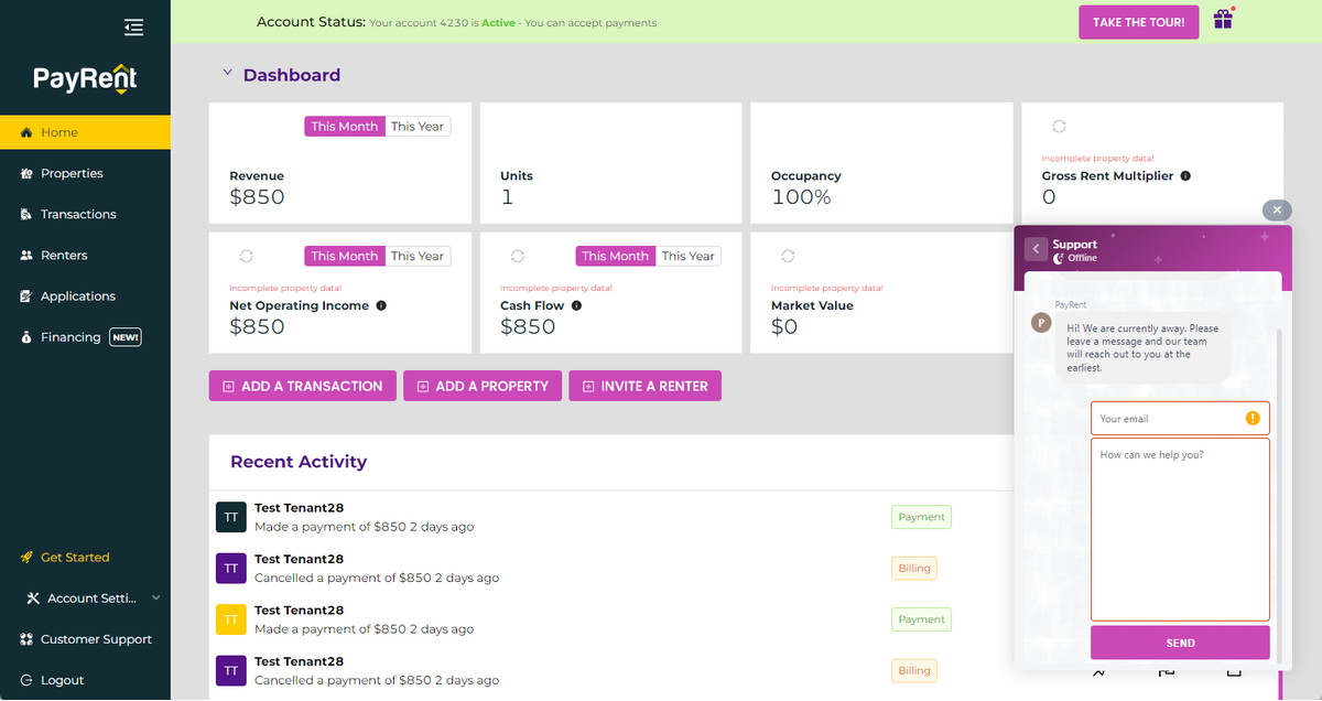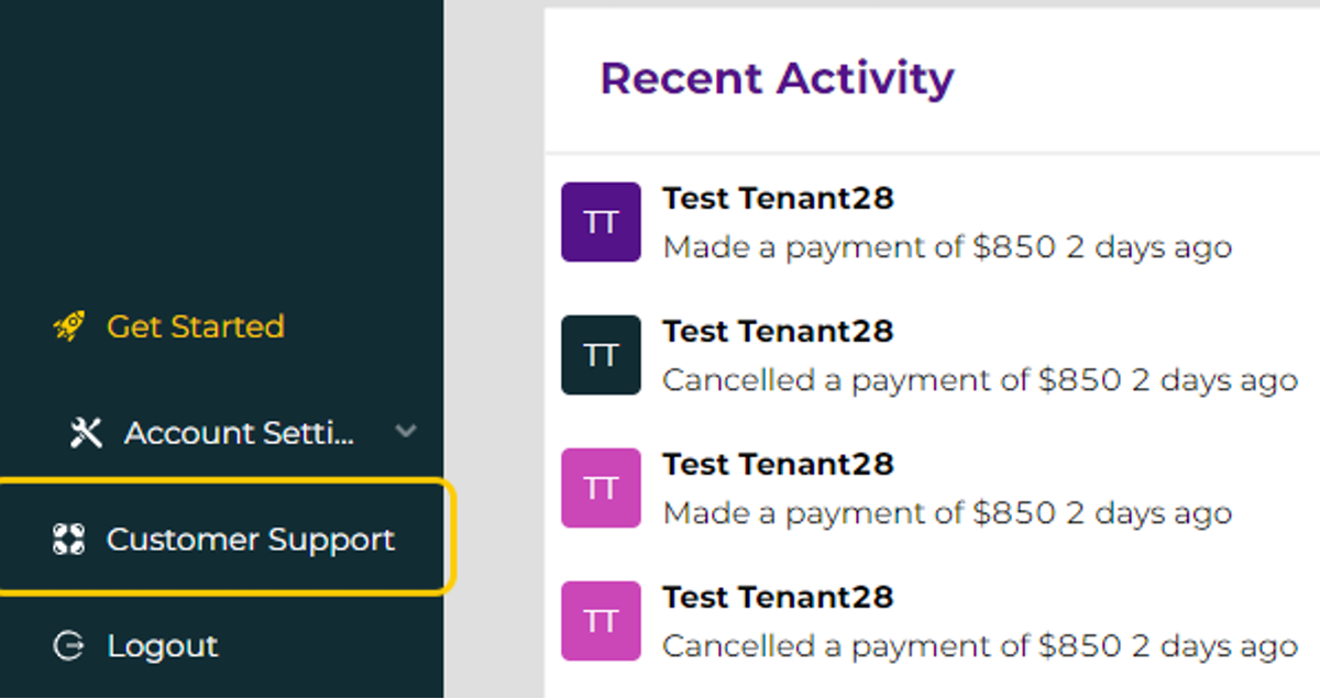 1. Please contact PayRent customer support at support@payrent.com or chat with us online.